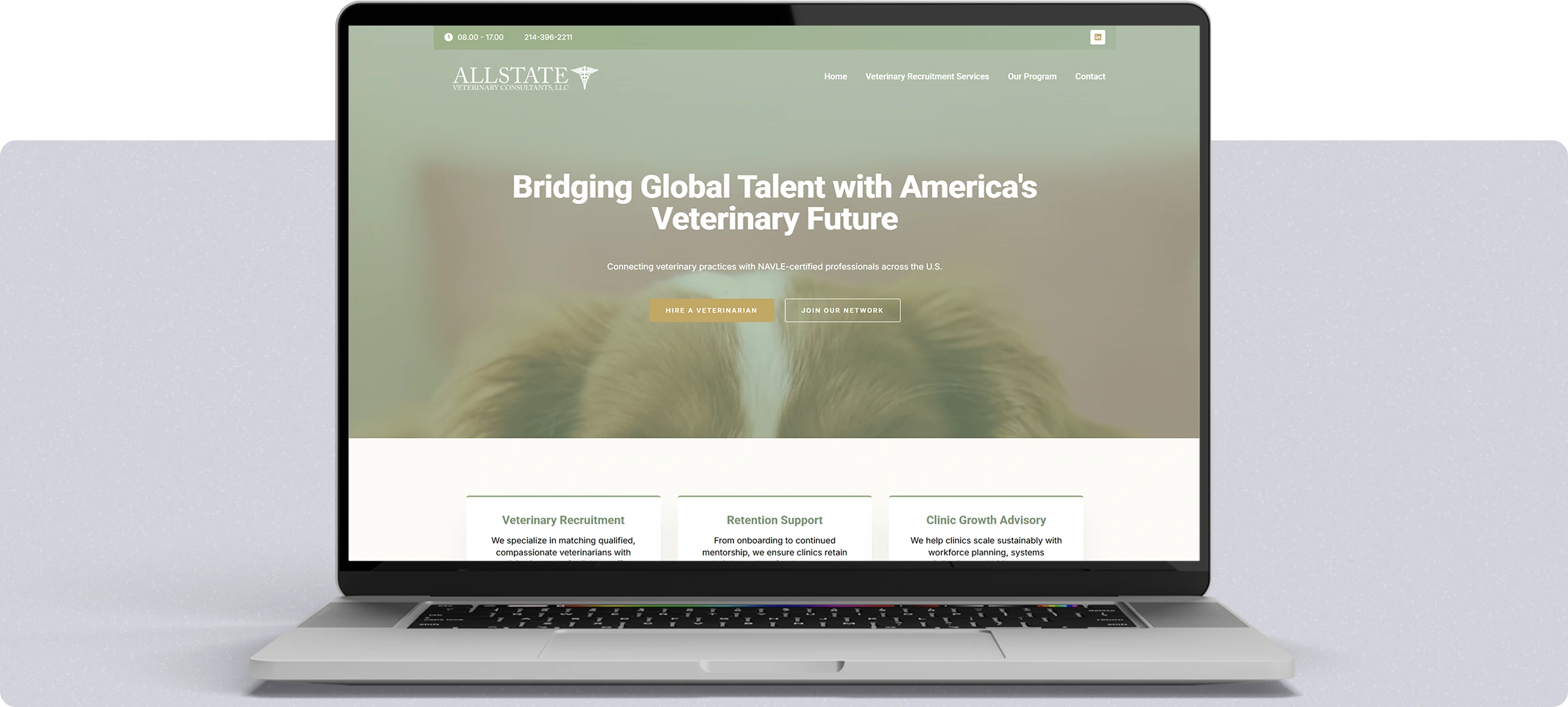 Allstate Veterinary Consultants brings over 20 years of expertise in veterinary business consulting. Despite their deep industry knowledge, their website failed to communicate their authority, experience, or client-focused approach.